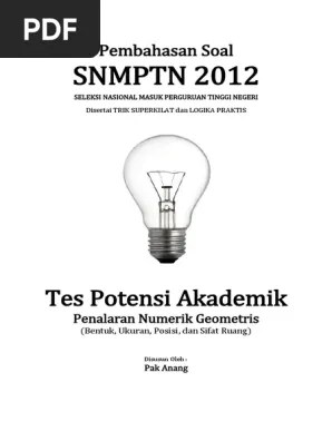 1 paket latihan soal komprehensif @20 soal dengan pembahasan lengkap. Pada penelitian ini nilai tes potensi akademik dibagi menjadi 3 bagian yaitu bagian verbal, numerik, dan spasial serta nilai mcq. Terdiri dari 20 soal verbal. Contoh tes potensi akademik lengkap materi silogisme materi numerik materi deret angka dan huruf contoh soal tpa rotasi 3 dimensi Dan perbendaharaan kata), paket kemampuan numerik (tes deret bilangan, matematika berpola, .